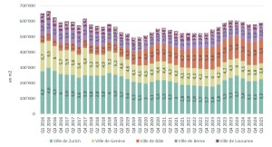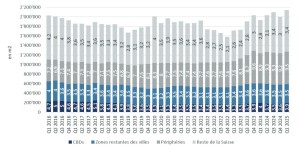 *Les CBD, les zones restantes des villes et les périphéries font référence aux villes de Genève, Lausanne Bâle, Berne et Zurich.