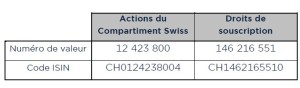 Un droit de souscription est attribué à chaque action actuelle. 5 actions actuelles donnent le droit de souscrire à 1 nouvelle action du Compartiment Swiss contre paiement du prix en espèces.