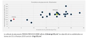 Le véhicule de placements PRISMA PREVIOUS RRRE affiche 2.06 de kg/CO2/m2, les objectifs de la confédération en termes de CO2 à l’horizon 2050 sont de <3 kg/CO2/m2.