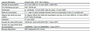 Augmentation de capital de CHF 144.3 millions en mars 2025